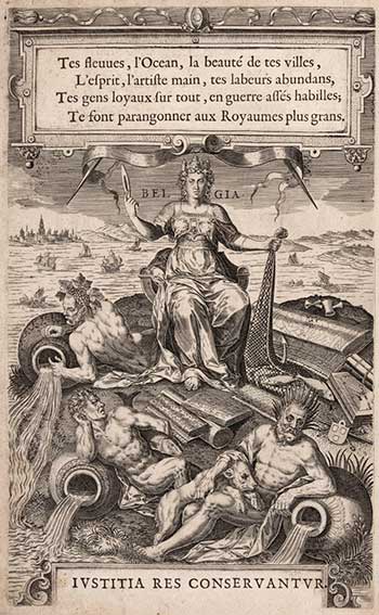 GUICCIARDINI, L. La description de tous les Païs-Bas, autrement appellés la Germanie inférieure, ou Basse Allemagne. Antw., Chr. Plantin, 1582. (20), 495, (25) pp. W. engr. front., engr. ti-p., 2 full-p. dedic. engrs., 12 double-p. engr. maps & 66 engr. plans & views (for the greater part double-p.). Fol. Cont. cf. w. raised bands, & dec. gilt back. (Spine ends dam., corners bumped/worn, joints partly split, bind. chafed in places, front. laid down, lower margin of ti. & of 1 map strengthened, some small marg. rep., marg. a bit stained/thumbed in places, but a complete copy with the plates in good condition. Sold w.a.f., not subject to return).