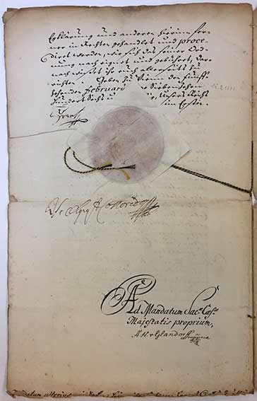 FRANZ I (Holy Roman Emperor, 1708-65) -- WIR FRANZ von Gottes Gnaden Erwehlter Römischer Kayser, zu allen Zeiten Wehrer des Reichs, in Germanien und zu Jerusalem (…) etc: etc:. (1746). (4) lvs. Manuscript in cont. hand on 6 pp., imperial decree formulated by A.H. Glandorff, 15 Febr. 1746. Signed by the emperor Franz I. and with imperial wax seal. Fol. (A bit browned/dustsoiled along edges).