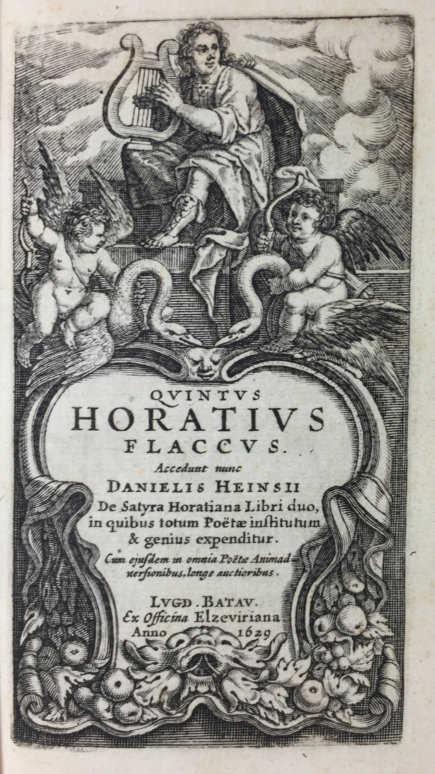HORATIUS. (Opera). Accedunt nunc D. Heinsii De satyra Horatiana libri duo, in quibus totum poëtae institutum & genius expenditur. Leiden, Elzevier, 1629. 3 parts in 1 vol. (32), 239; 296 (recte 286), blank leaf; 250 pp., 3 blank lvs. 12°. Beautiful blue straight-grained mor. w. raised bands, tichly dec. gilt back. sides ruled in gilt, inside dentelles, all edges gilt.