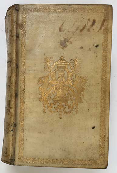 MIDDELBURG -- PETAVIUS, D. Rationarium temporum, in partes duas, libros tredecim tributum. Amst./Lpz., Arkstee & Merken, 1745. 3 parts in 1 vol. (32), 795, (1); 312 ,(8); 259, (3) pp. W, engr. title, front.-portr., 7 (fold.) plates w. portrs. Cont. vellum w. richly dec. gilt back, gilt coat of arms of Middelburg on both sides, surrounded by gilt floral borders. (Prize and ties fail, else a fine copy).