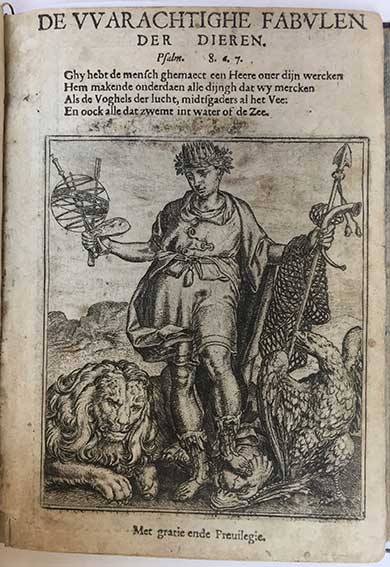 Extremely rare first edition of this influential Dutch emblem- and fable-book, with the prints based on the illustrations by Bernard Salomon for Gilles Corrozet, 'Les fables du tres ancien Esope' (1542). - Landwehr, 189; Praz, p. 314f.; De Vries, 11; Belgica Typografica, 838. - Sold w.a.f., not subject to return.€ 2000