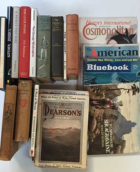 WODEHOUSE, P.G. William Tell Told Again. Lond., A. & C. Black, 1904. W. cold. ill. by Ph. Dadd. Or. pictorial cl. (Spine a bit stained/soiled, name entry on free endpaper, some foxing). VG. First ed., 3rd issue. -- Id. Love Among The Chickens. NY, 1909. W. ill. by A. Both. Ocl. (Bind. a bit soiled, upper hinge weak). VG. First US ed. Jasen, 7a. -- Id. & C.H. BOVILL. A Man of Means. (1991). Obrds. w. dust-j. F/F. Facs. ed. No. 66/200. -- PEARSON'S MAGAZINES. 6 issues, 1905-06. Prof. ill. Lge-8°. Or. pictorial wrps. (Wrps. worn/dam.). VG-. Kid Brady Stories, first US publication. Scarce in any condition. -- And 13 o. (incl. i.a. magazines, facs. eds.). (22).