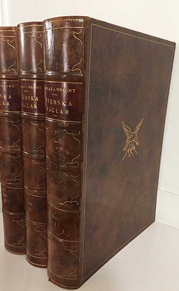 ORNITHOLOGY -- WRIGHT, M., W. & F. von. Svenska fåglar efter naturen och på sten ritade. Med text af E. Lönnberg. Stockholm, (1927-29). 3 vols. W. 364 magnificent lithogr. cold. plates. Fol. Or. gilt marbled cf., marbled edges and endpapers. In the or. boxes w. felt covered interior. (Some very light chafing to binds. in places, but a very good set).