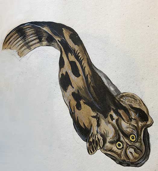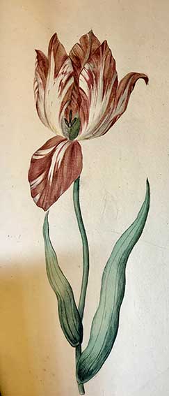 BINDER containing 76 anonymous, late 18th c. drawings in colour of flowers, plants, fruits, shells, fishes, etc. Sm-fol. Old vellum. (Apart from some age-toning and some staining in places in good interior condition).