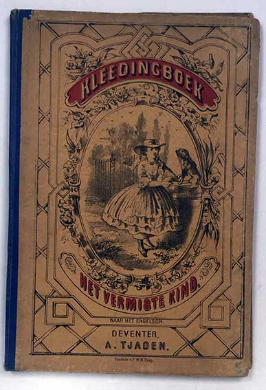 DRESS-UP BOOK -- LINA, het vermiste kind. Naar het Engelsch. Deventer, A. Tjaden, (1862). 28 pp. W. 6 handcold. lithogr. plates each with a detailed scene, at the center of each plate is a little girl wearing an actual cloth dress, each w. diff. applied fabric. Or. printed clothbacked brds. (Extremities slightly worn, book block weak, but else a very fine copy).