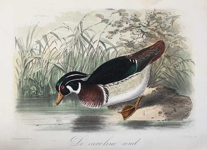 The beautiful lithographs printed by Trap in Leiden. Soon after finishing the first volume, Keulemans left for England and became one of England's most famous and popular artists. His early drawings are considered to be the best. - Nissen ZBI 491; Landwehr, Books w. cold. plts., 86; J. Balis. Van diverse pluimage, 84.€ 1000