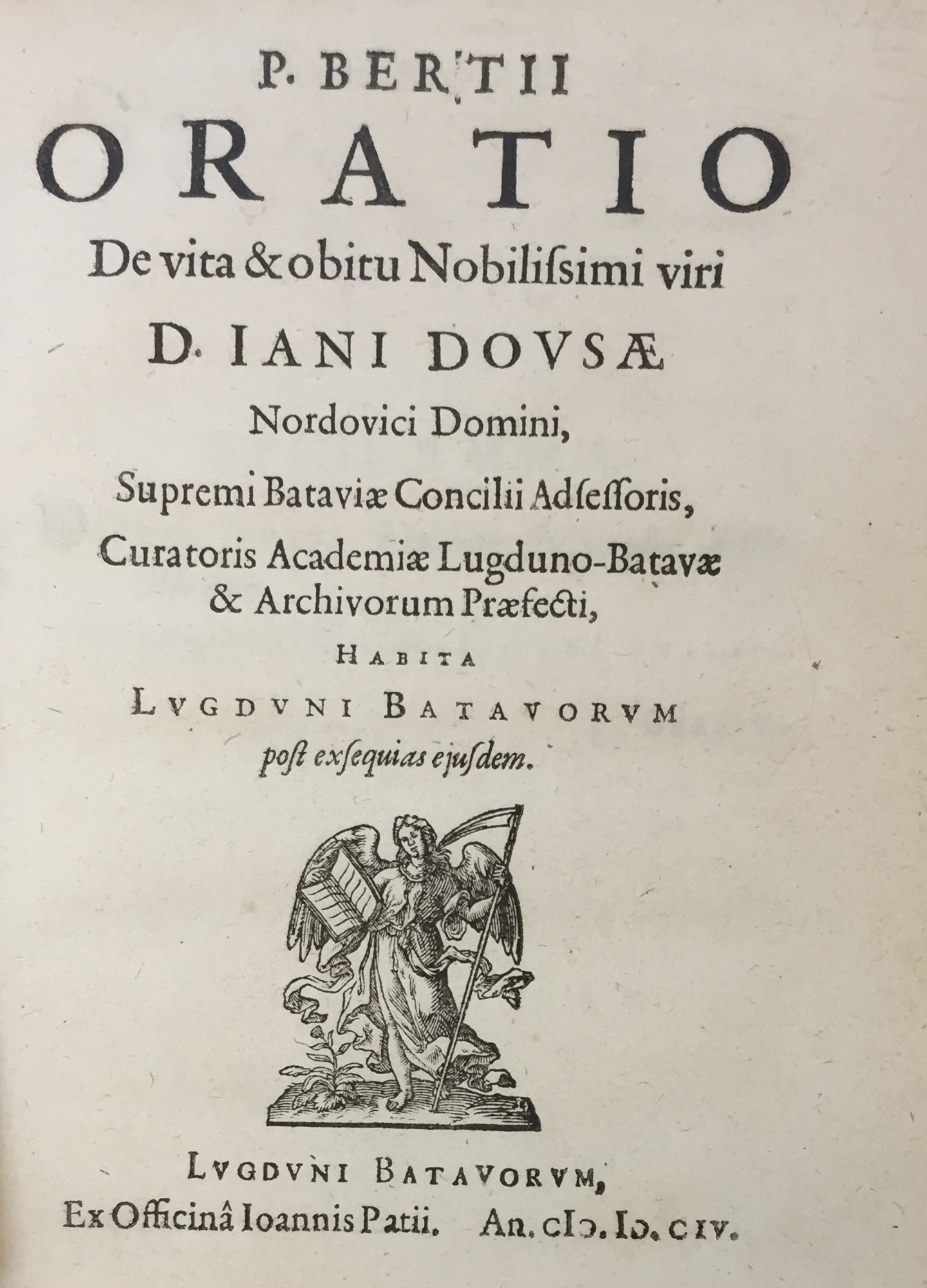 DOUSA, J. Novorum poematum secunda Lugdunensis ed., plus dimidia parte (…) locupleta et aucta. Leiden, Impressa in nova Lugduni Bat. Academia (Andries Verschout), 1576. (272) lvs. Sm-8°. 19th c. h. vellum. (Ti-p. stained (ink), lower margin a bit stained in places, slightly browned). -- Added: P. BERTIUS. Oratio de vita & obitu (…) Iani Dousæ. Leyden, Ex Off. J. Patii, 1604. (32) pp. Sm-4°. Wrps. -- And 'Redenvoeringen' by A. Vereul (containing 'Lofrede op Janus Douza'). (3).