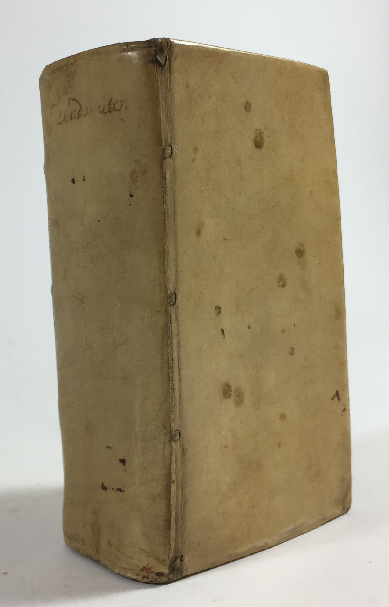 (LA PEYRERE, Is. de). Præadamiten, of oeffening over het 12, 13, en 14. vers des vijfden Capittels van den brief des apostels Pauli tot den Romeynen. Waer door geleert wort: Datter menschen voor Adam geweest zijn. - Followed by: EUSEBIUS ROMANUS (=Ph. Le Prieur). Opmerkingen over 't boek der Præadamiten, in welke den schrijver wederleyt wort, en vas staende gehouden wordt, dat Adam den eersten mensch geweest is. - (N.pl., n.pr., Amst., Elzevier or Janssonius?), 1661. 2 in 1 vol. (8), 508; (12), 96 pp. W. 1 fold. map (w. marg. tears). 12°. Cont. vellum w. overl. sides.