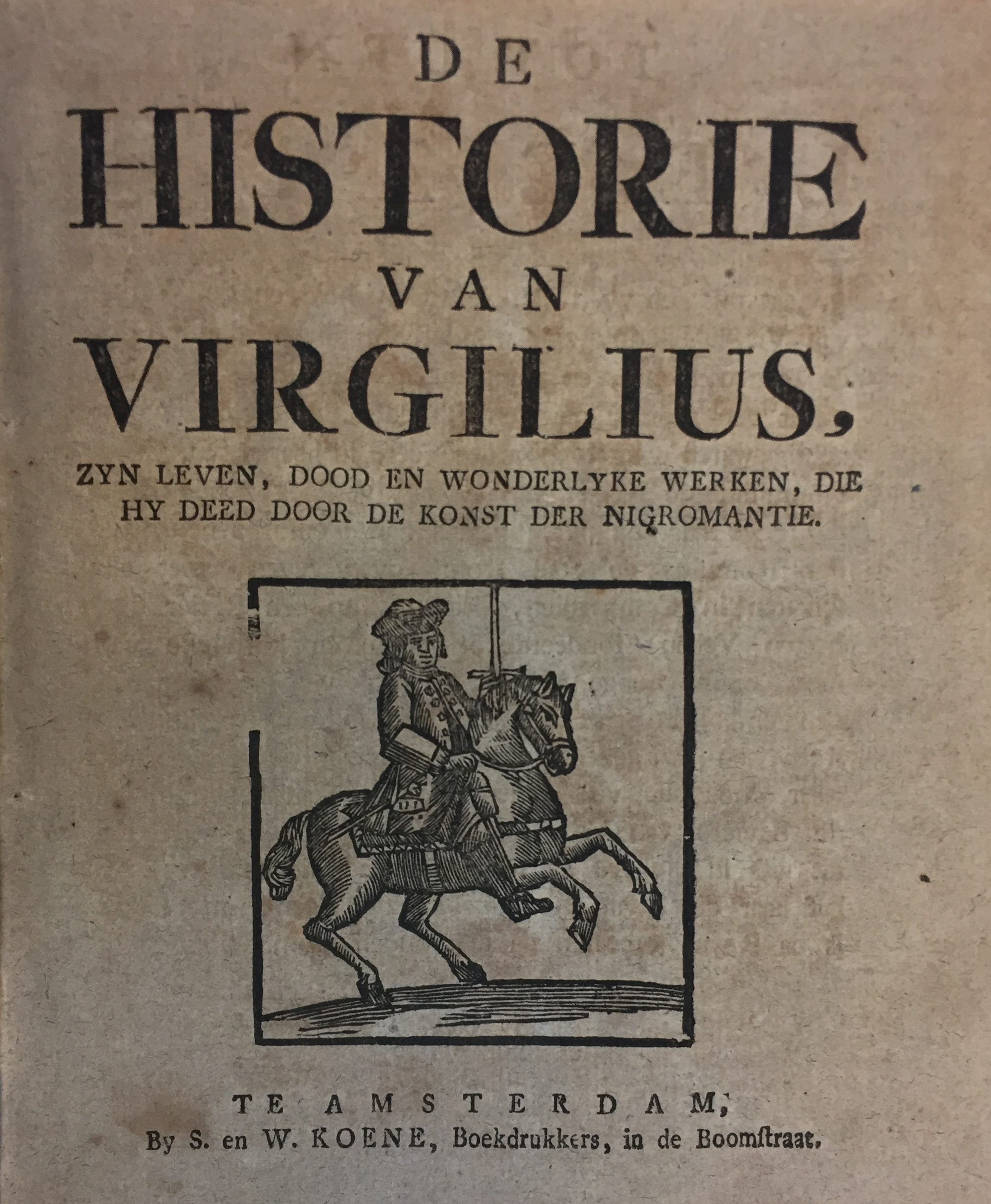 CHAPBOOKS -- SCHOONE HISTORIE, Een, van Margareta van Limburgh, en Hendrik haer broeder die veel wonderlyke avonturen gehad hebben. Amst., S. & W. Koene, (c. 1798). 120 pp. W. ti-woodcut. 4°. Wrps. (Margins cut, a bit browned/foxed). -- HISTORIE, De, van Virgilius, zyn leven, dood en wonderlyke werken, die hy deed door de konst der nigromantie. Amst., S. & W. Koene, (c. 1800). 24 pp. W. ti-woodcut & 7 text-woodcuts. 4°. Owrps. (Margins cut, a bit browned/foxed). -- (2).