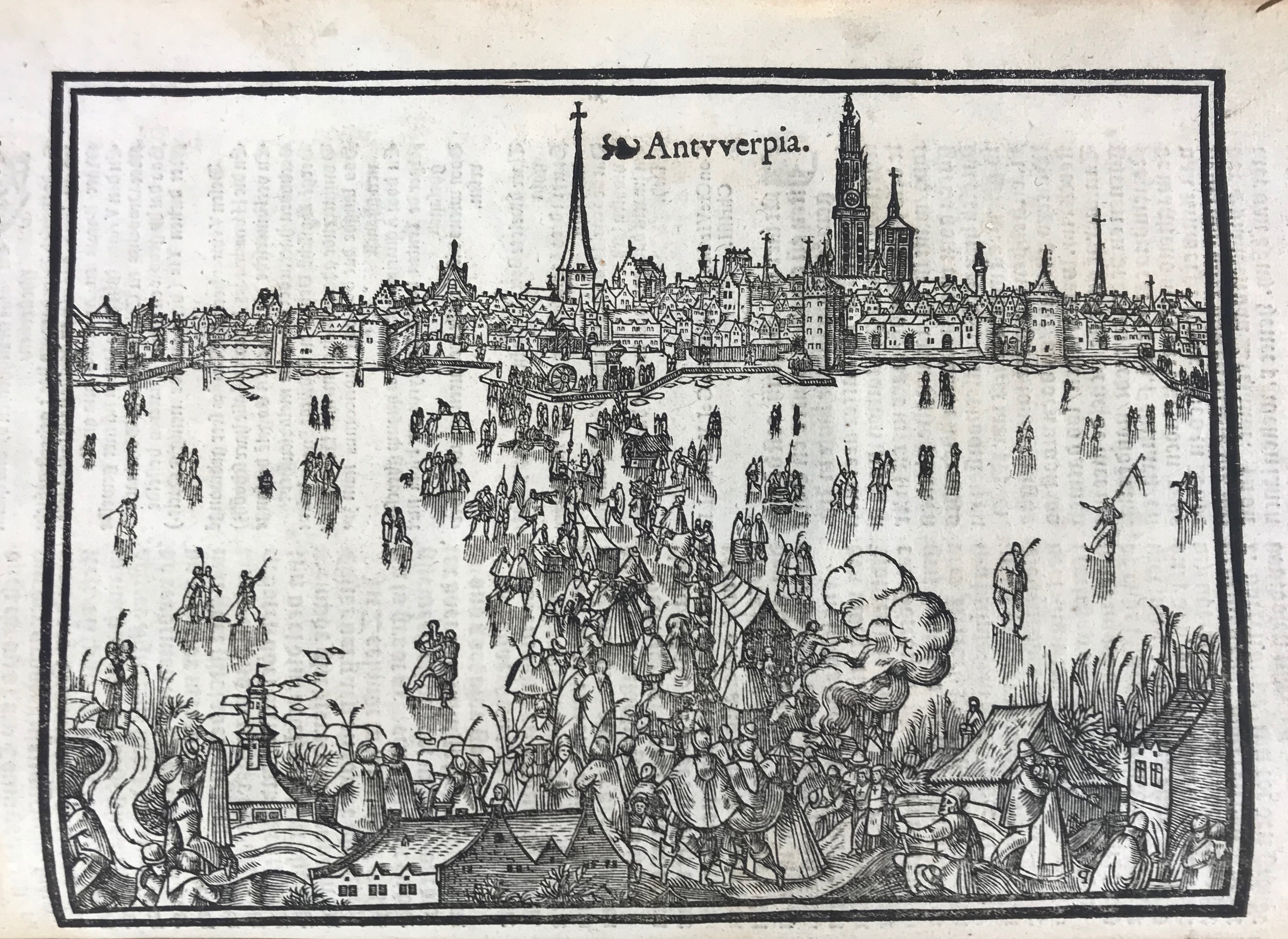Ad 1: Rare chronicle, dealing with the period 1516 to 1565. The woodcuts include a very fine woodcut of Antwerp w. people skating on the river Schelde and a large portrait of Phillip II. Belg. Typ., 2211; Moes & Burger, 155; Typ. Batava, 3639.Ad 2: Contains a nice series of portraits of the dukes and duchesses of Brabant, depicted together with their coats of arms. Belg. Typ., 47 (&5009!).€ 800