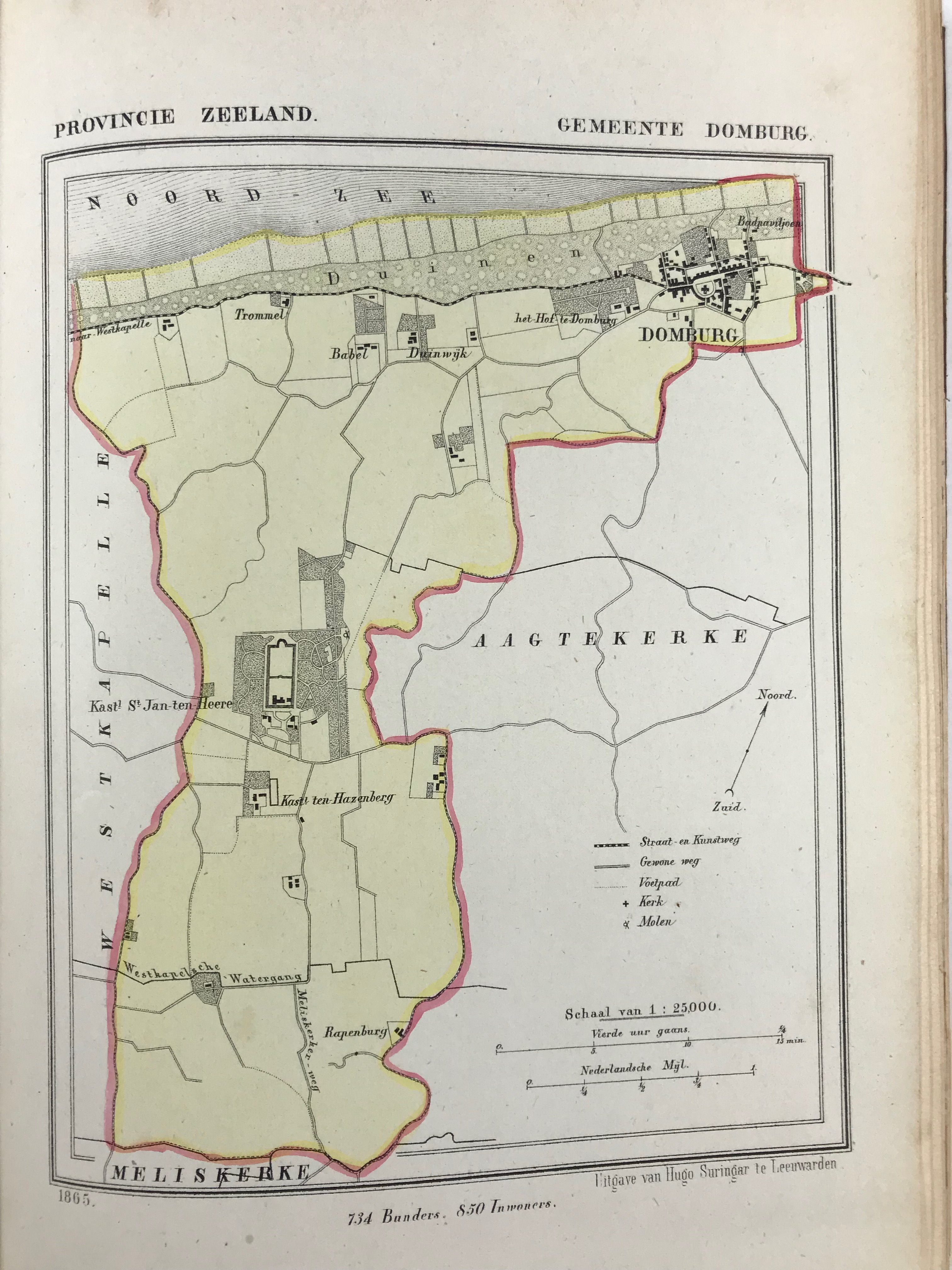 1. Noordbrabant: 188 maps/plans. 2. Gelderland: 156 maps/plans. 3. Zuid-Holland: 205 maps/plans. (Extra: plan of Stein, not in Koeman). 4. Noord-Holland: 139 maps/plans. 5. Zeeland: 115 maps/plans. 6. Utrecht: 74 maps/plans. (Extra: plan of Willige Langerak, Z-H., not in Koeman). 7. Friesland: 46 maps/plans. 8. Overijssel: 66 maps/plans. 9. Groningen: 59 maps/plans (Without 3 'Arrondissement' maps (not in index), Koeman nrs. 2-4, but extra: Sappemeer, not in Koeman). 10. Drenthe: 35 maps/plans. 11. Limburg: 126 maps/plans. - Koeman II, Kuy 19.