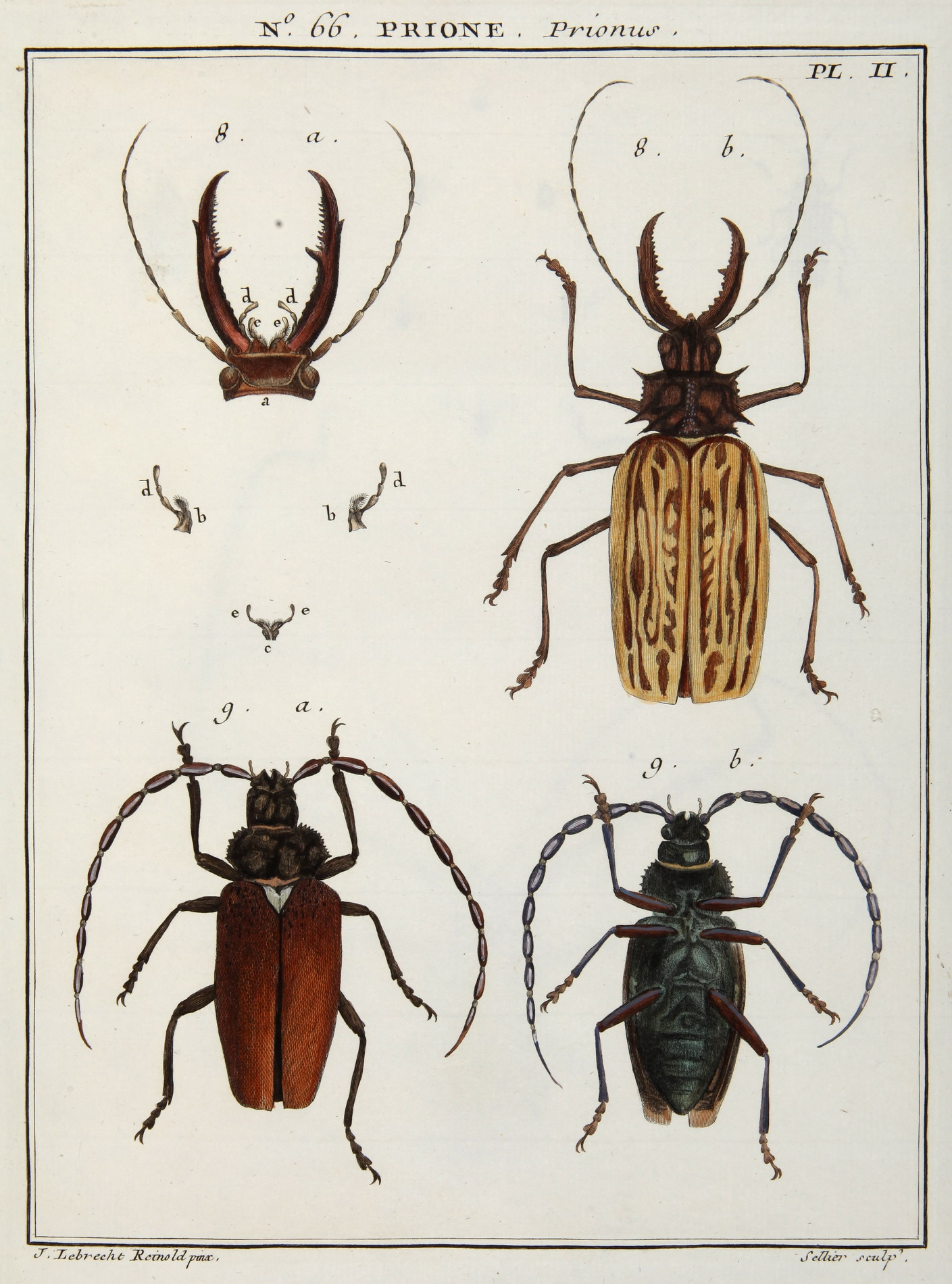 The fine plates, depicting thousands of various species of Coleoptera, are by J. Audebert, J.L. Reinold and Meunier, and engraved by Copia, Desfontaines, Manceau, Sellier and F.L. Swebach. Guillaume Antoine Olivier (1756-1814) was one of the greatest of the early French naturalists and an entomologist of high standing. He was a close friend of J.C. Fabricius and a patron of P.A. Latreille. His large collection of beetles (now for the larger part in the Paris Natural History Museum), gathered on journeys through European & Asiatic Turkey, Asia Minor, Persia, Egypt, and various Mediterranean Islands, is described in his famous work, by which he became nationally known as a great entomologist. - Nissen ZBI, 3012; W. Junk, Bibliographia Coleoptera 2545: "Très rare".Comprising: Vol. 1: (4), xx, 26, 4, 190, 14, 84, 92, 4, 20, xix, (2) pp. 63 plates (incl. frontispiece); vol. 2: (8), 16, 8, 22, 22, 10, 10, 12, 12, 10, 4, 16, 8, 6, 12, 4, 4, 4, 6, 18, 14, 28, 12, 4, 6, 54, 96, 32, 8, xix, (3) pp. 63 plates; vol. 3: (4), 116, 16, 4, 8, 16, 40, 14, 4, 38, 4, (12 blank lvs.), 8, 20 (incl. 2 blank lvs.), 16, 6, 6, 16, 6, 6, 6, 6, 14, 8, 12, 20, 6, 18, 30, 10, 10, 6, 8, xxviii pp. 65 plates; vol. 4: (4), 42, 132, 42, 30, 72, 4, 4, 34, 10, 10, 12, 4, 18, 6, 18, 14, 24, 16, xxiii pp. 72 plates; vol. 5: (4), 612 pp. 59 plates; vol. 6: (4), 613-1104 pp. 41 plates.€ 8000