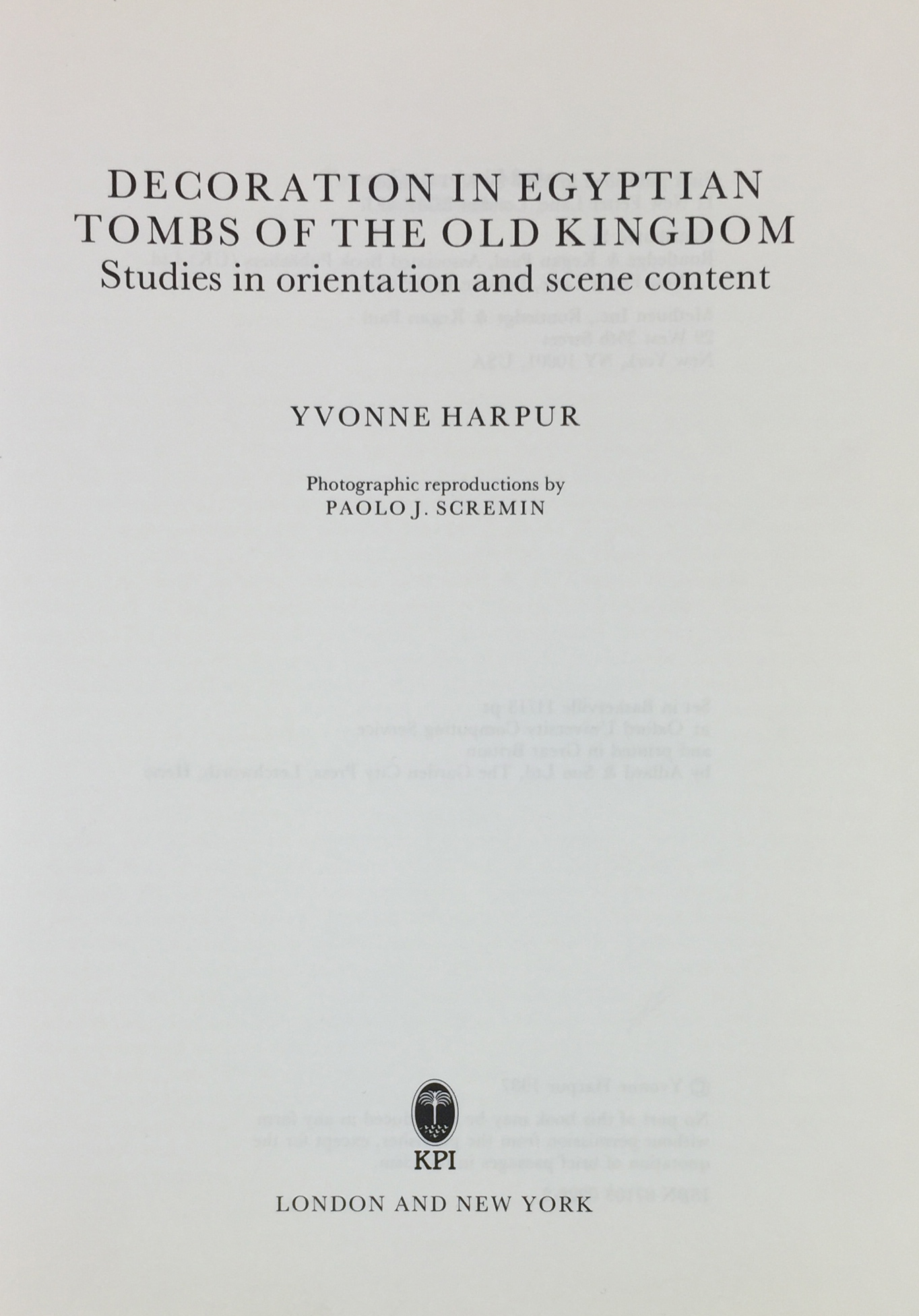 GARIS DAVIES, N. de & M.F. LAMING MACADAM. A corpus of inscribed Egyptian funerary cones. Vol. 1: Plates. Oxford, 1957. 10 pp. & 611 figs. Fol. Ocl. All published, the intended text-vol. never appeared. -- Y. HARPUR. Decoration in Egyptian tombs of the Old Kingdom. Studies in orientation and scene content. (1987). W. ill. & plates. Lge-8°. Obrds. -- (2).