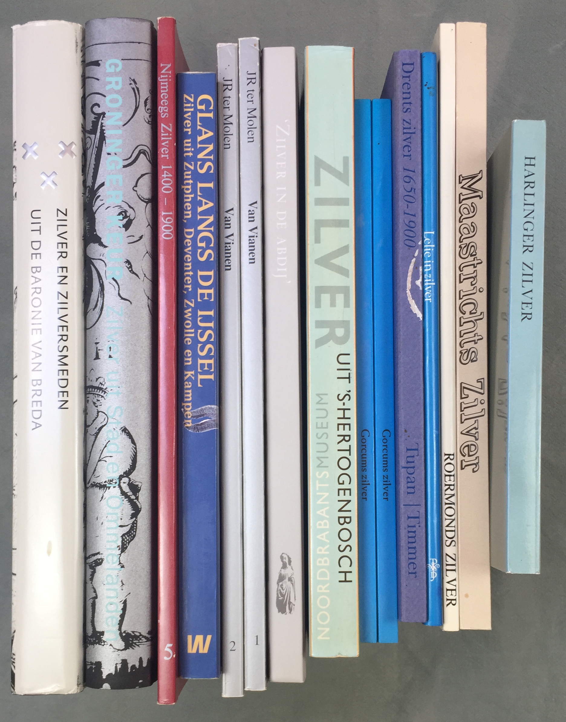 GOLD - SILVER -- MOLEN, J.R. ter. Zilver. 1994. 4°. Ocl. w. dust-j. -- Id. Van Vianen. 1984. 2 vols. 4°. Owrps. -- J.-P. v. RIJEN. Groninger keur. Zilver uit Stad en Ommelanden. 1997. 4°. Ocl. w. dust-j. -- Id. Zilver- en zilversmeden uit de Baronie van Breda. 2000. 4°. Ocl. w. dust-j. -- B. DUBBE. Zwols zilver. Het Zwolse goud- en zilversmidsambacht en zijn meesters. (1999). Lge-8°. Ocl. w. dust-j. -- L.E. v.d. BERGH-HOOGTERP. Goud- en zilversmeden te Utrecht in de late middeleeuwen. (1990). 2 vols. Ocl. w. dust-j. -- And 20 o. (also smaller) works on Dutch silver. (28).
