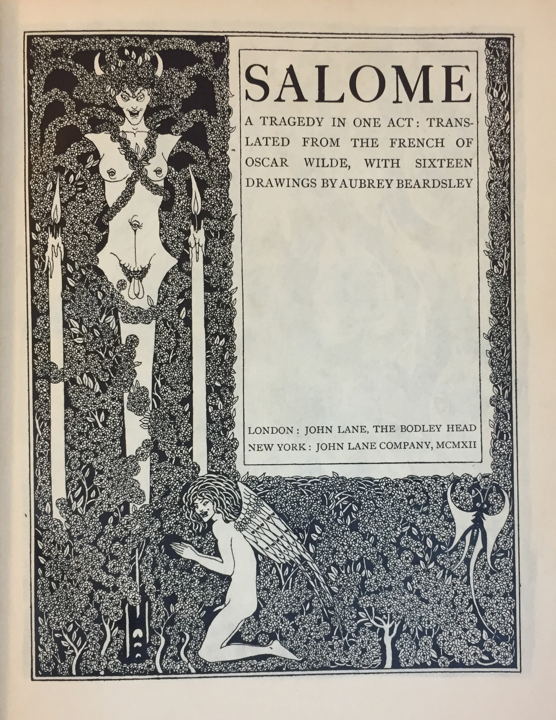 BEARDSLEY -- WILDE, O. Salomé. A tragedy in one act. Introd. R. Ross. Lond./N.Y., The Bodley Head/John Lane Company, 1912. xviii, (6), 65, (2) pp. W. tog. 16 plates by Aubrey Beardsley. Sm-4°. Or. green gilt dec. cl. des. by Beardsley. (Bind. a bit soiled/slightly faded in places, owner's name/address on free endpaper, slightly foxed in places).